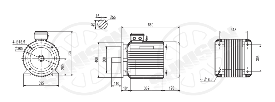 该电动机广泛用于机械制造,食品加工,化学药品,采矿和冶金,驱动各种设备以满足各种功率需求的行业。IP55保护水平有效地抵抗了灰尘和水滴并适应恶劣的环境。 B34水平安装方法简化了安装过程并降低了安装成本。前盾的安装杆为3或4。55mm轴直径可确保强扭矩输出以及稳定且可靠的连接。顺时针旋转方向(可自定义)满足大多数设备的需求并提高兼容性。上侧插座盒设计有助于电线访问并提高接线效率。