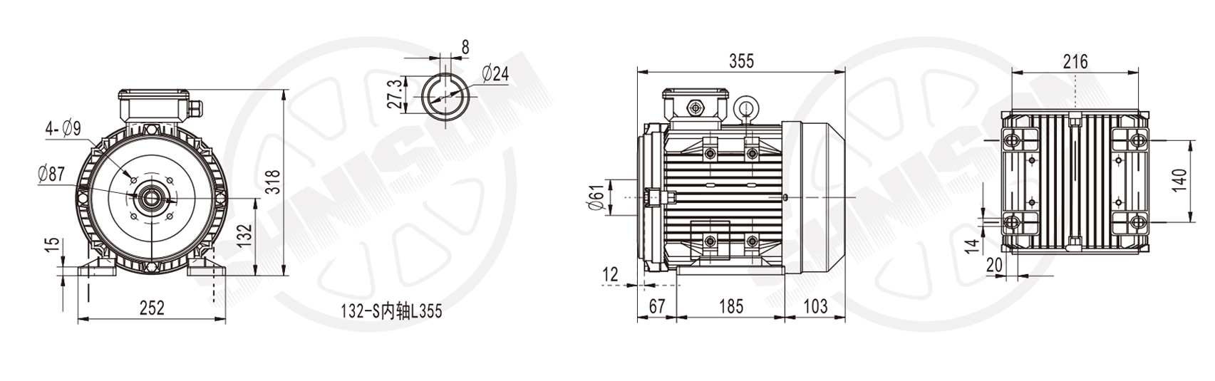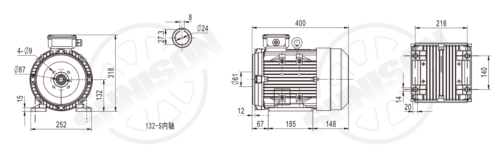 High-Torque Output 132 Frame Three-phase Internal Shaft B34 Flange Mount Motor