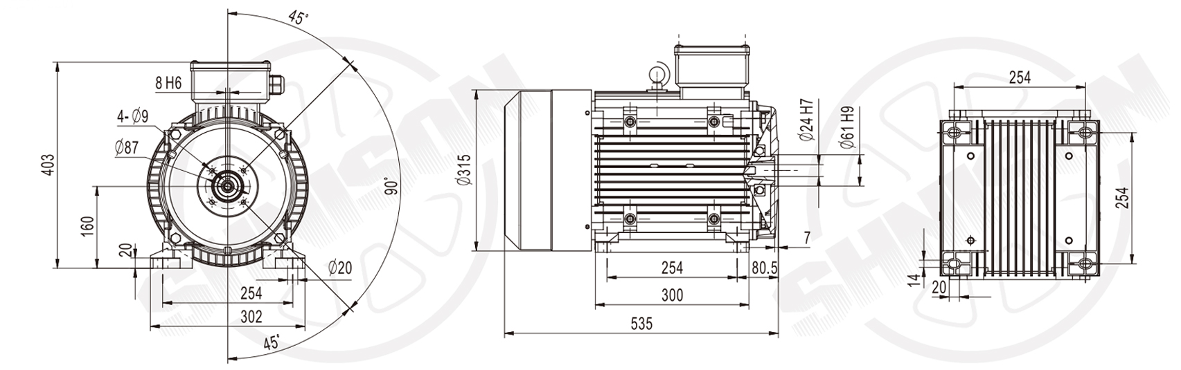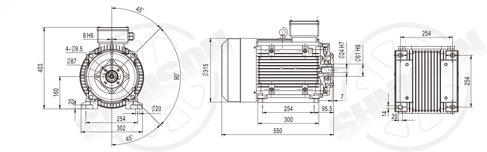 The industrial grade durable 160 frame three-phase internal shaft B34 flange mount motor is designed for harsh industrial environments, ensuring stable operation despite dust, moisture, corrosion, and other challenging conditions. The motor features a heavy-duty cast iron casing with special protective treatment, enhancing overall protection and effectively protecting critical internal components from environmental damage, ensuring long-term operational reliability.