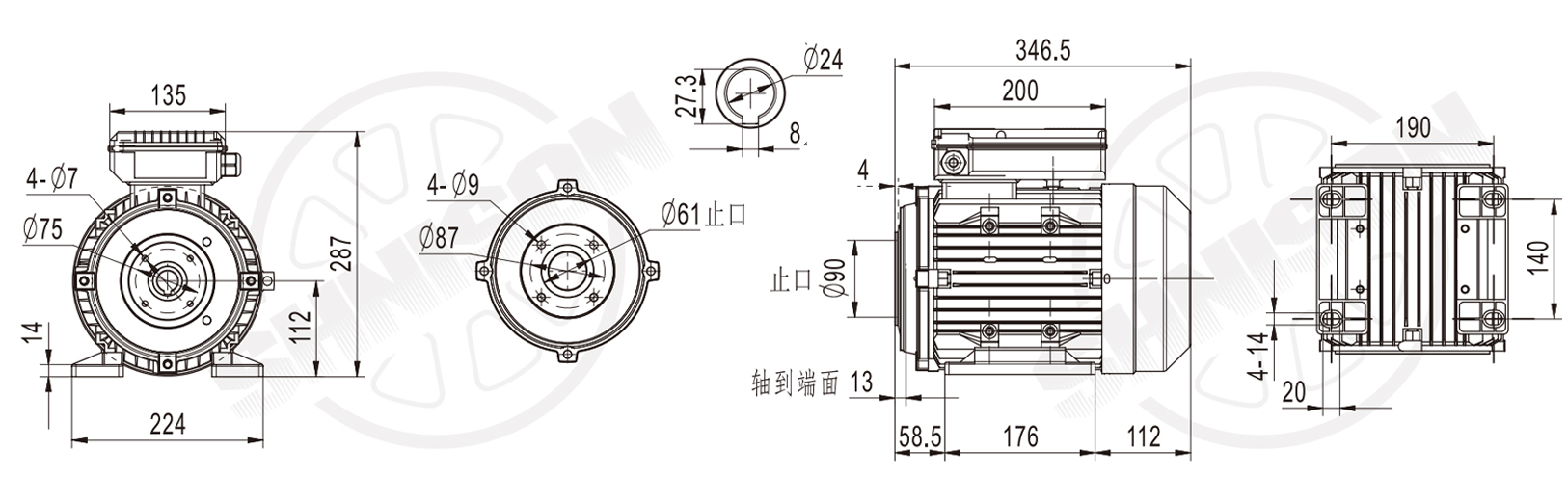 The quiet and smooth 112 frame single-phase internal shaft B34 flange mount motor features quiet operation and smooth power, specifically designed for applications with high noise and vibration requirements. Its optimized structural design and dynamic balancing effectively suppress mechanical resonance and noise transmission during operation, ensuring smooth and stable operation even at high speeds or for extended periods.