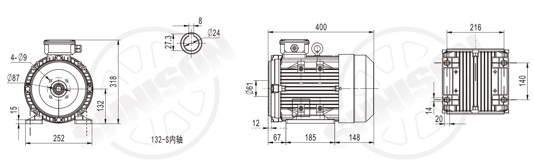 实心轴三相电机