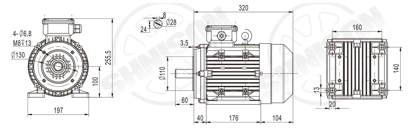 实心轴三相电机