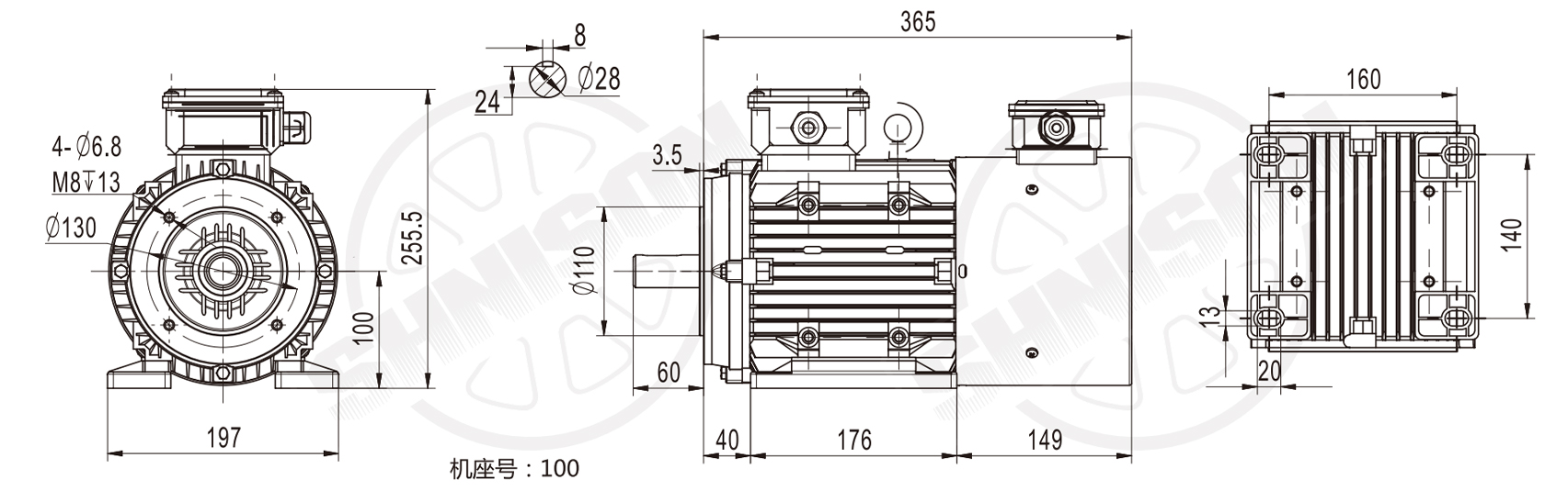 The high-precision control 100 frame variable frequency external shaft B34 flange mount motor is designed for precise control needs. Its optimized electromagnetic design and mechanical structure enable efficient integration with various inverters, ensuring precise speed and position control during operation. This motor offers fast response, maintaining stable operation despite frequent acceleration and deceleration switching, as well as forward and reverse rotation, meeting the requirements of dynamic control conditions.